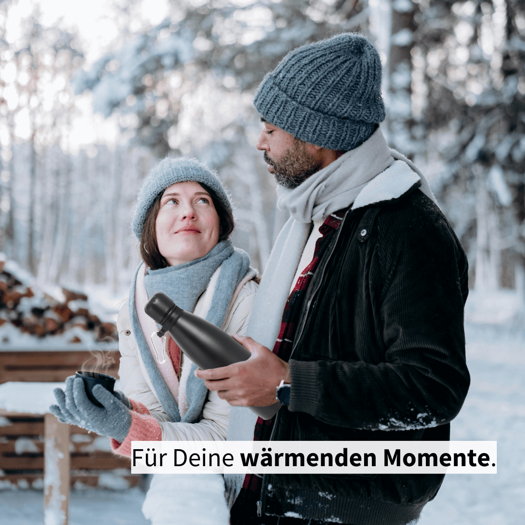 Dank Doppelwand-Vakuum-Isolierung hält sie Deine Getränke bis zu 12 Stunden heiß und bis zu 24 Stunden kalt.